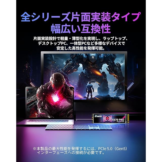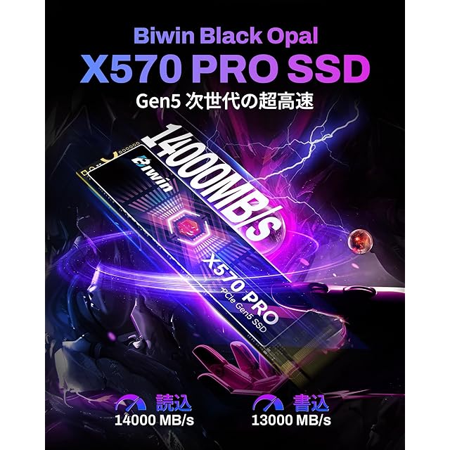 商品名:Biwin X570 PRO 2TB SSD Gen5×4 最大読込:14000MB/s NVMe2.0 M.2 Type 2280 PCIe 内蔵SSD 6nmプロセス 低消費電力 高耐久 メーカー5年