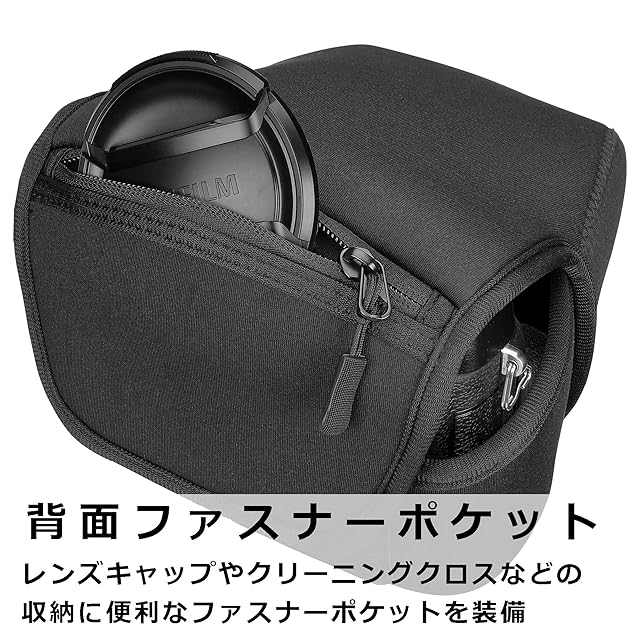 背面のポケットには外したレンズキャップやメモリーカードなどを収納可能。