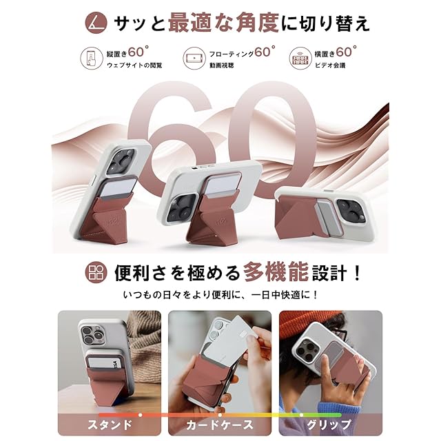 ✅【対応機種と注意事項】iPhone 16/15/14/13/12全シリーズに対応できます。または、MagSafe機能があるスマホケースやマグネットリングと併用することで使用可能です。*MOFT Snapケースと併用すれば、磁力がさらにアップ!