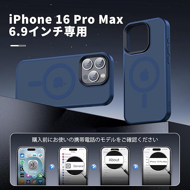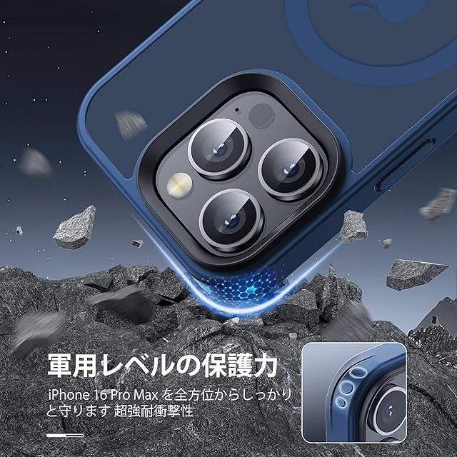 【米軍規格・MagSafe対応】Gtsoho iPhone 16 Pro Max ケース 用 ケース 透明 マグネット搭載 ワイヤレス充電 耐衝撃 耐久性 全面保護 黄ばみなし ストラップホール付き イフォン 16 Pro Max 用 カバー マグセーフ対応 ネイビー | TREND DESIGN 家電専門店