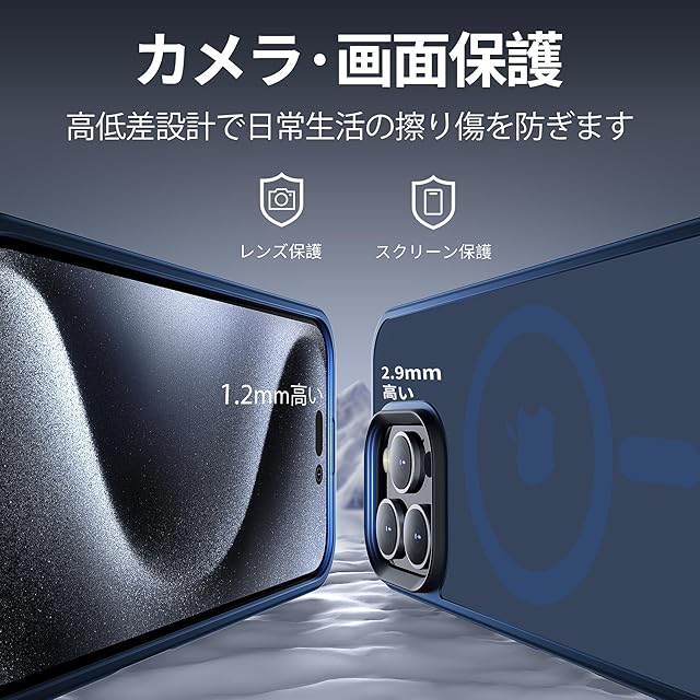 いくら気をつけていても落とす時がある!でも大丈夫!2Mの高さから26回以上落としても本体は綺麗に無傷!背面「カメラエアバッグ」耐衝撃技術も備えています。耐震性の高いTPUバンパーと頑丈なPC背面と組み合わせた二重構造で、非常に高い耐衝撃性を誇り、アイフォン16 Pro Max を全方位からしっかりと守ります。