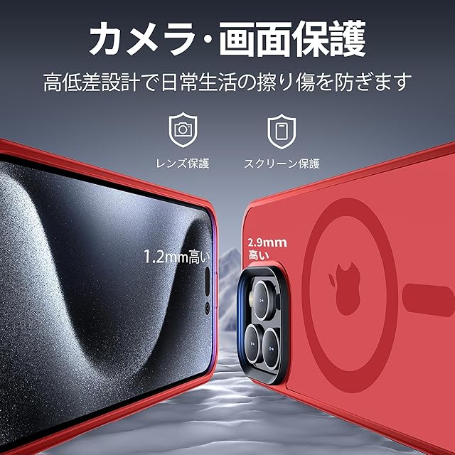 いくら気をつけていても落とす時がある!でも大丈夫!2Mの高さから26回以上落としても本体は綺麗に無傷!背面「カメラエアバッグ」耐衝撃技術も備えています。耐震性の高いTPUバンパーと頑丈なPC背面と組み合わせた二重構造で、非常に高い耐衝撃性を誇り、アイフォン16 Pro Max を全方位からしっかりと守ります。