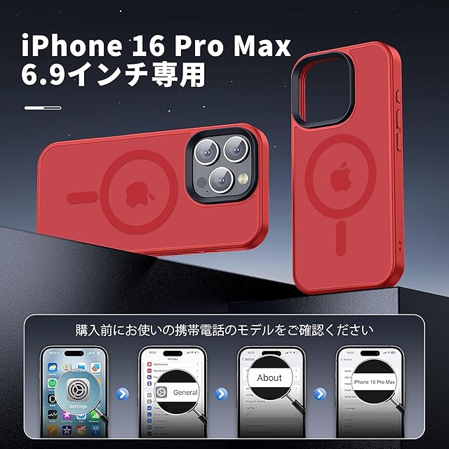 iPhone 16 Pro Max 用 ケース MagSafe対応 ワイヤレス充電 磁気ケース 耐衝撃性 米軍MIL規格の保護 傷に強い背面 6.9インチ