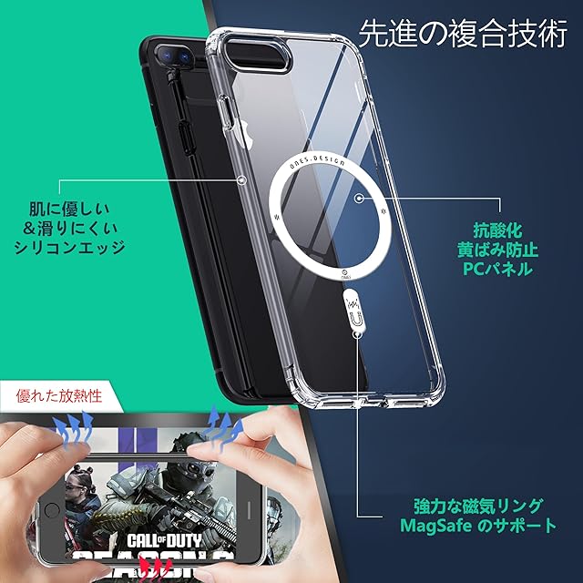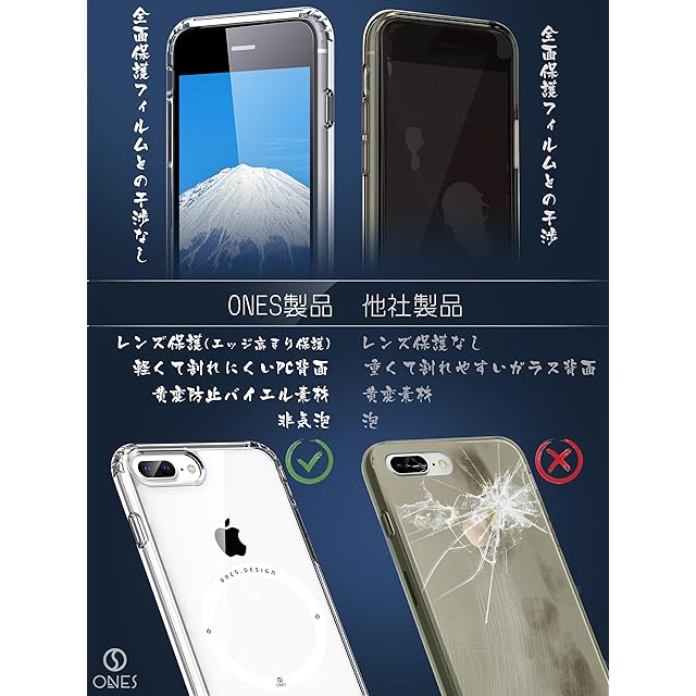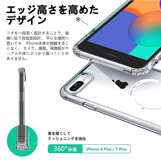 商品名:ONES HD超透明 iPhone 8Plus 7Plus 超強磁性MagSafe対応 ハードケース 米軍MIL規格 エアバッグ 超耐衝撃 レンズ保護 画面保護 「 高靭性強化PC保護板 ✚ 高弾性衝撃吸収·シリコンバンパー 」 Qiワイヤレス充電 傷防止 滑り止め 超軽量 持ちやすい 黄ばみ防止 クリスタル クリア マグネット カバー