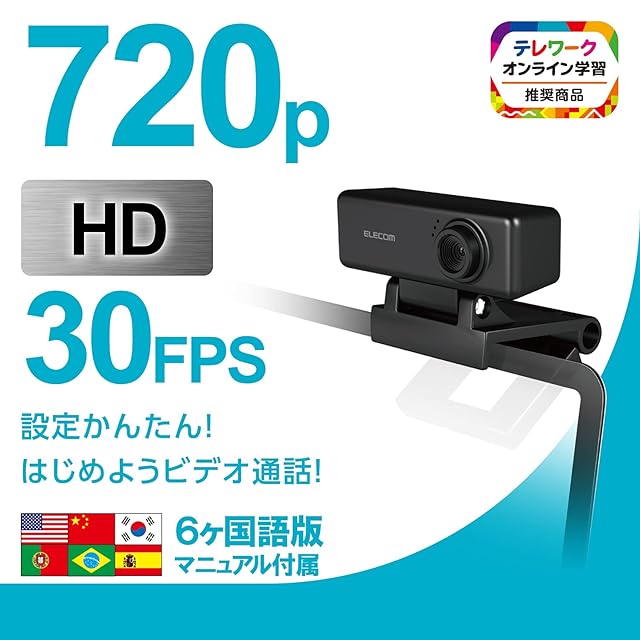 商品名:エレコム WEBカメラ UCAM-C310FBBK HD 720p 30FPS 100万画素 マイク内蔵 高精細ガラスレンズ ケーブル長1.5m ブラック