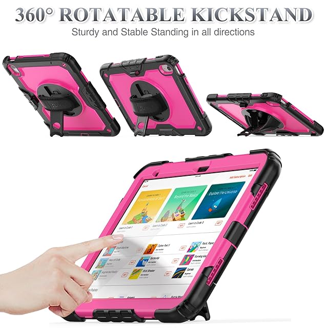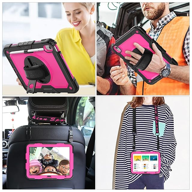 SEYMAC stock iPad(A16) 第11世代/第10世代専用ケース 耐衝撃 ペンホルダー フィルム付き前面カバー 横置き縦置きスタンド 360度回転ハンドストラップ ショルダーストラップ付き(ローズレッド) | TREND DESIGN 家電専門店