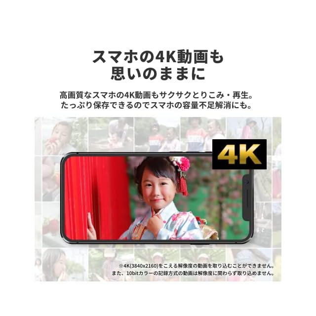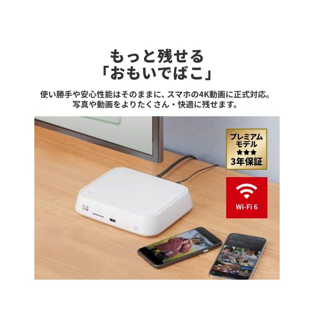 【もっと残せて、もっと快適に】使い勝手や安心性能はそのままに、新しくなった「おもいでばこ」3年プレミアムモデル。とりこみの高速化や、スマホ4K動画に対応。さらに、バックグラウンドでのとりこみ対応やオートスタンバイ機能の追加で、よりたくさん・快適に写真や動画を残せる。
