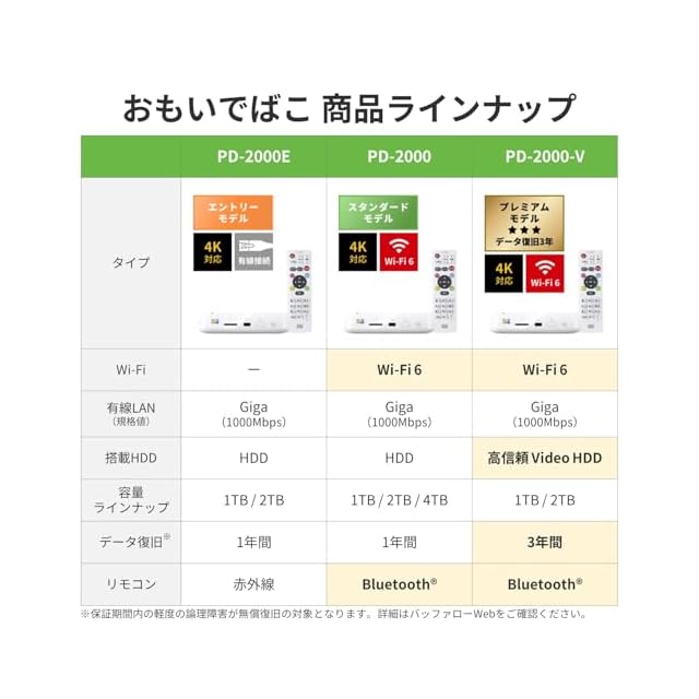 商品名:バッファロー おもいでばこ 無線 スマホ 4K 動画 Wi-Fi 6 対応 高信頼 Video HDD 採用 3年 大容量 プレミアム モデル 2TB PD-2000-LV