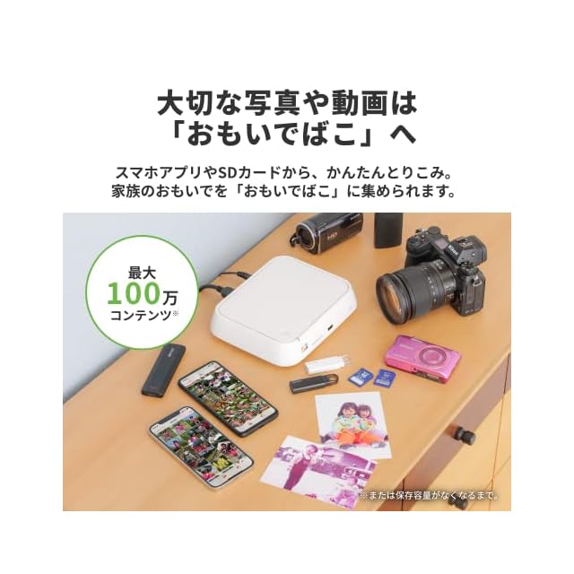 【選べるとりこみ方法】専用アプリ「おもいでばこアプリ※」を使えば、スマホやパソコンから写真のとりこみが可能。もちろん、SDカードやUSBメモリ経由での保存も可能。※Windows / Mac / iOS / Android 対応