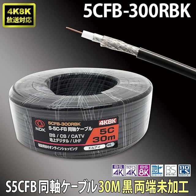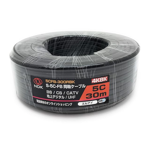 二幸電気工業 S5CFB 同軸ケーブル 30m 黒 (2K 4K 8K BS CS CATV 地デジ) アンテナケーブル 両端未加工 純銅素材の芯線導体 (5CFB-300RBK) | TREND DESIGN 家電専門店