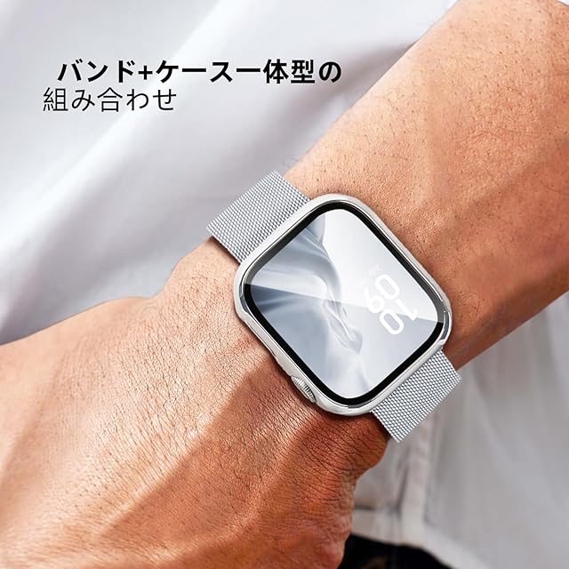 商品名:コンパチブル Apple Watch バンド 40mm 41mm 44mm 45mm コンパチブル アップルウォッチバンド ステンレス留め金製 男女兼用 マグネットクラスプ コンパチブル アップルウォッチ用バンド 保護カバー付き アップルウォッチバンド 通気 メッシュ ベルトアップルウォッチ 一体型 Apple Watch Series 9/SE/8/7/6/5/4/3/2/1に対応