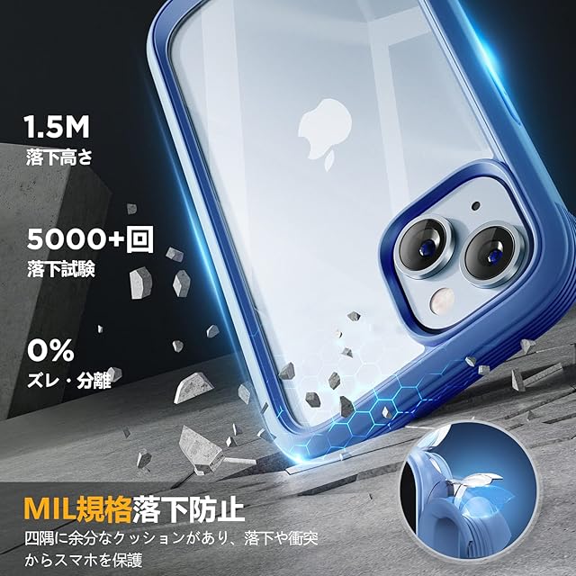 Miracase iPhone14ケース スマホケース iphone14 用 全身バンパー保護ケース 9H 強化ガラス 6.1インチ フルカバー 360° ワイヤレス充電対応 ブルー | TREND DESIGN 家電専門店