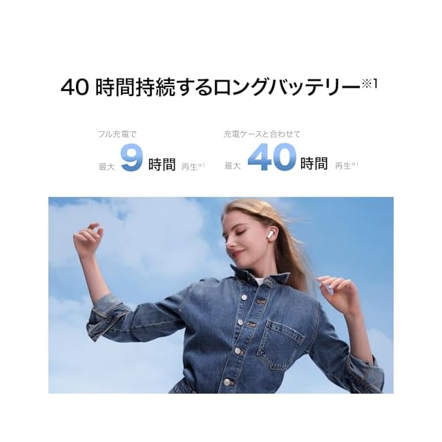【40時間持続するロングバッテリー】フル充電で最大9時間再生、充電ケースと合わせて最大40時間再生の音楽再生が可能