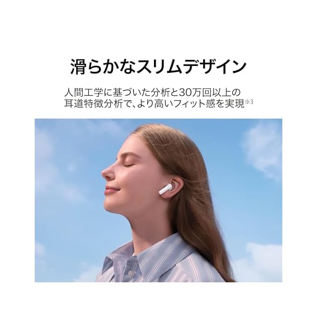 【耳に優しい重さ】単体イヤホン約3.8gと非常に軽量、人間工学に基づいた分析と30万回以上の耳道特徴分析で、より高いフィット感を実現