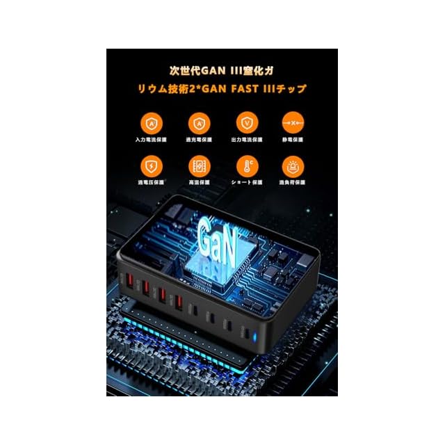 500W 充電器 【2024新登場 GaNFastⅢ 8ポート 2*単口100W 】 PD3.0対応 8ポート同時急速充電 2*100W&4*65W&2*QC20W 6 USB-C&2 USB-A 縦式省スペース ダブル GaNFastⅢ(窒化ガリウム) 2*100W常時対応 複数ノートPCに急速充電対応 MacBook Pro PD対応 iPad/iPhone/Android/その他