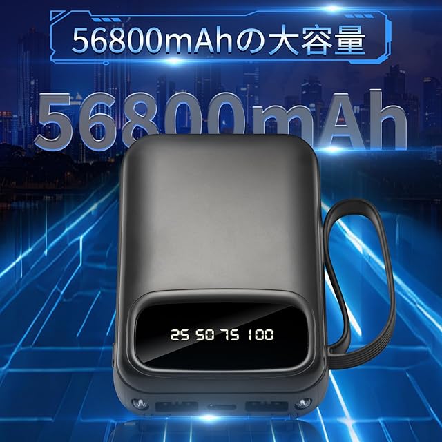 商品名:モバイルバッテリー 大容量 56800mAh【2025新型・5台同時充電】 急速充電対応 Type-C入出力&USB-A出力 LED残量表示・非常用LEDライト付き 持ち運び便利 モバイルバッテリー 大容量 PSE認証済 安全回路保護 iOS/Android各種対応 旅行/出張/防災に最適