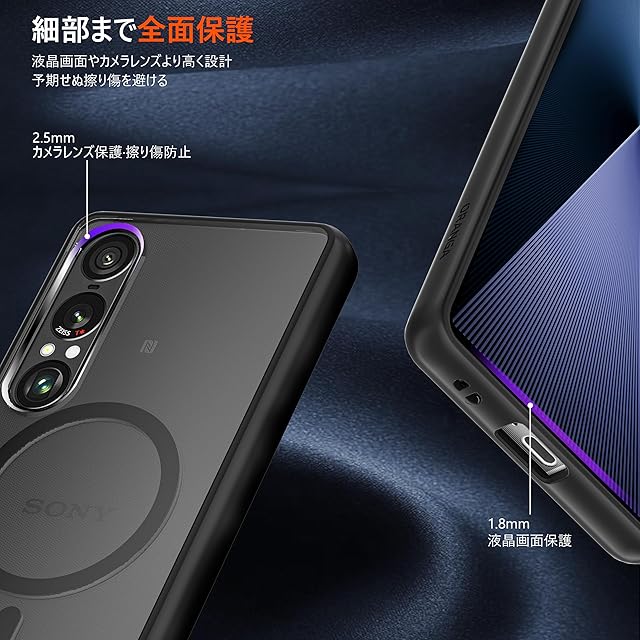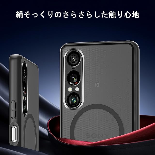 商品名:【米軍規格・Magsafe対応】SONY Xperia 1 VII ケース マグネット搭載 ワイヤレス対応 半透明 SO-51F | SOG15 耐衝撃 指紋防止 マット感 黄ばみなし ストラップホール付き マグセーフ対応 エクスペリア1 VII カバー ブラック