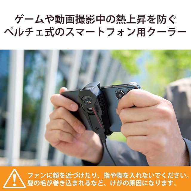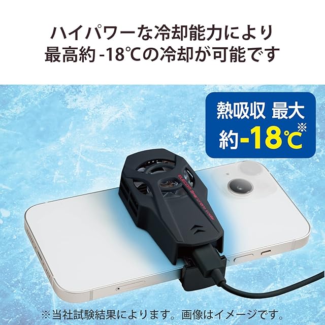 ゲームや動画撮影中の熱上昇を防ぐハイパワースマホクーラー。ペルチェ式で、軽量・コンパクト・静音ながら、最高-18℃の冷却力を発揮します(※当社試験結果による)。また異常な高温になった場合は、自動で停止する安全装置も内蔵しています。