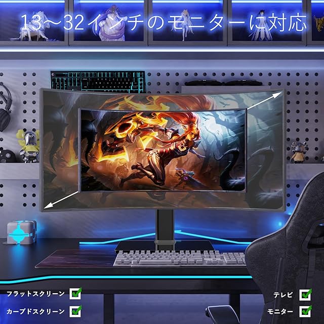 商品名:シングルLCDコンピュータモニター、独立型スタンドスタンド、13 "〜32"画面用、回転式、高さ調節可能、回転