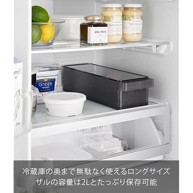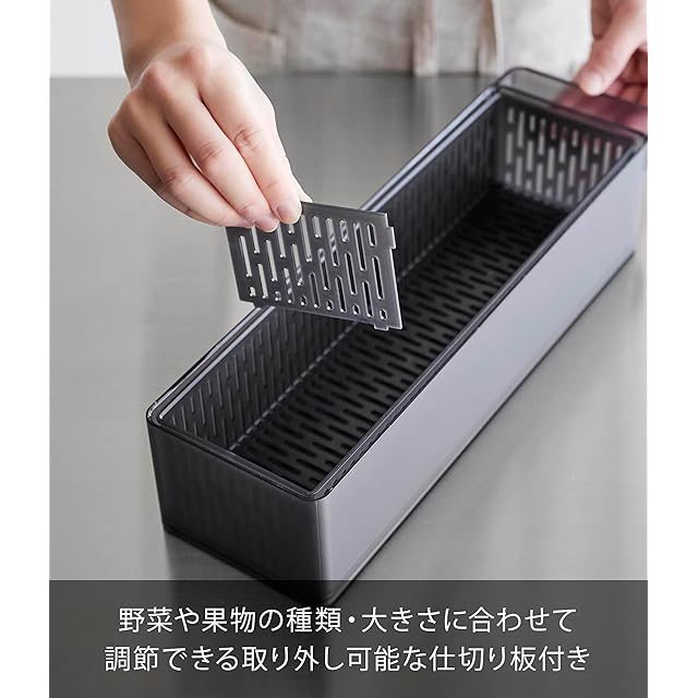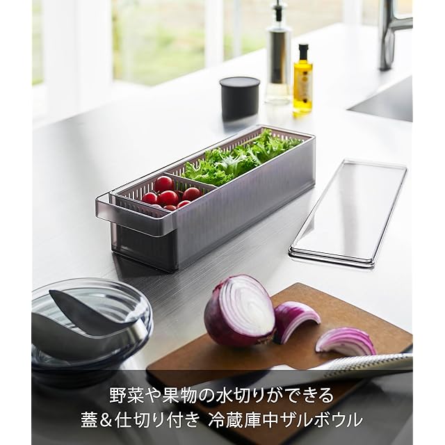 商品名:山崎実業(Yamazaki) 冷蔵庫中 ザルボウル 蓋&仕切り付き ブラック 容器:W37.5×D11×H8.5cm タワー tower 食洗機対応 保存容器 1474