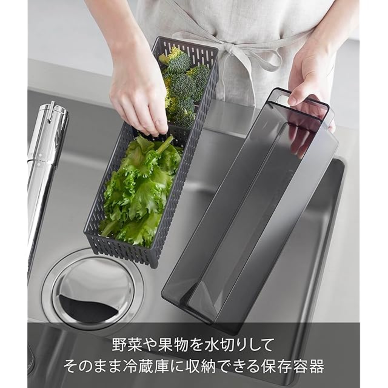 品質表示 容器・蓋:ポリスチレン ザル・仕切り:ポリプロピレン