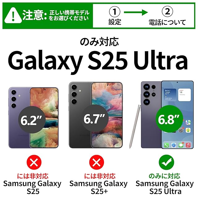 【 商品仕様 】 ■ 材質:PC「ポリカーボネート」+TPU「熱可塑性ポリウレタン」 ■ 外形寸法:長さ:192mm×幅:110mm×高さ:17mm×重さ:125g ■ カラー:Black「ブラック」、Green「グリーン」、Pink「ピンク」。 ■ 対応機種:Galaxy S25 Ultra「6.9インチ」 ■ 注意:S25/S25Plusに適用されません。