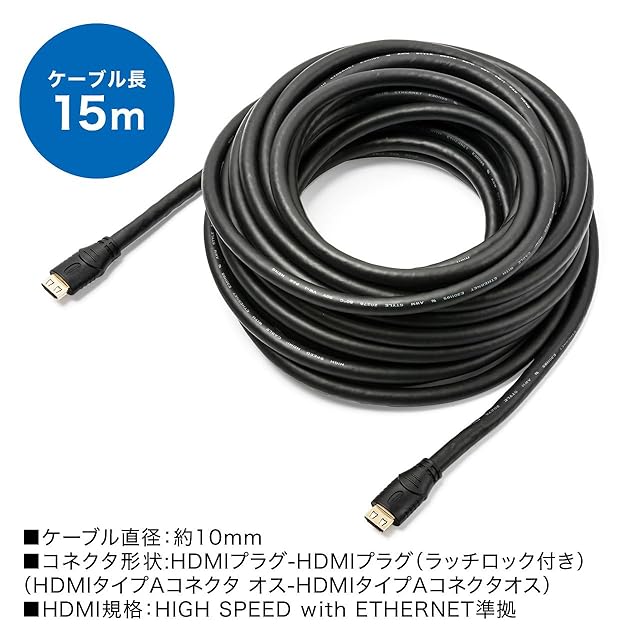 商品名:サンワダイレクト 抜けにくい HDMIケーブル 15m 4K/30Hz 3D対応 ラッチ内蔵 ブラック 500-HDMI017-150