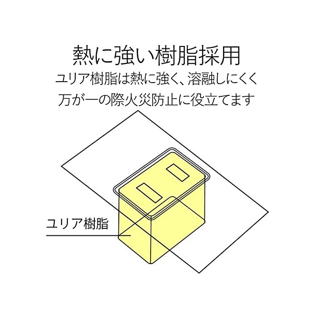 差込口には耐熱性に優れたユリア樹脂を使用していますので、万一の発熱の際にも融解しにくく、電気火災の防止に有効です。