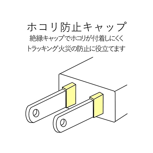プラグの刃の根本に絶縁キャップが付いており、トラッキング現象による火災の防止に役立ちます。