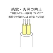 電源コードには、一般社団法人日本配線システム工業会規格(JWDS0010)に適合した二重被ふくコードを採用していますので、断線や被ふく破れによる感電・火災の防止に有効です。