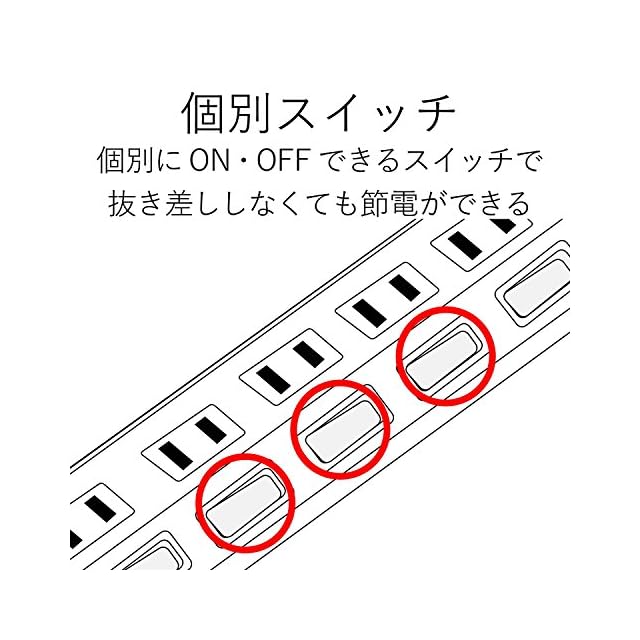 接続機器ごとにON/OFFでき、待機電力を個別に節約できる個別スイッチが付いています。