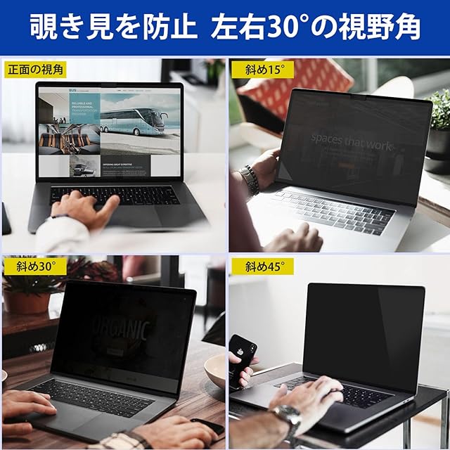 ✅ [プライバシー保護] 視野角は60度で、正面からだと画面はクリアに見えますが、隣の席からは真っ暗に見える偏光性を持った「覗き見防止フィルター」です。