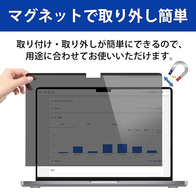 商品名:Macbook pro 16 インチ (2024/2023/2021年モデル)用 マグネット式 プライバシーフィルター のぞき見防止 フィルム 反射防止 ブルーライトカット 傷防止 両面使用