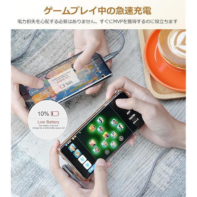 【L型設計】:L字のType cケーブル設計、頻繁にプラグを差し込んでも断線できません。コンセントやパソコンに繋いでも、ケーブルを無理やりに曲げる必要がなしで、スマホを横向きにして充電したり、ゲームしたり、スタンドやカバンに置いても便利になります。