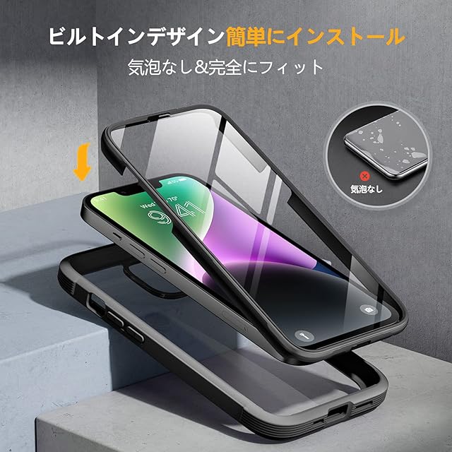 Miracase iPhone14 用 ケース スマホケース iphone14 用 全身バンパー 9H 強化ガラス 6.1インチ フルカバー 360°保護 ワイヤレス充電対応 黒