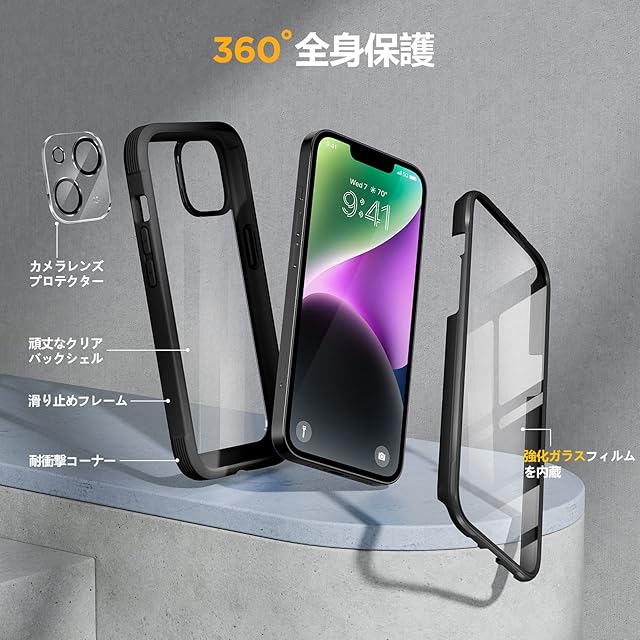【360°スマホケース】いphone14 用 ケースは高品質9H強化ガラスとソフトTPUバンパーの三層構造、透明なリアプレートはアイホン14本体のオリジナルカラーの美しさを犠牲なく、その同時に傷や衝撃などから守ります。