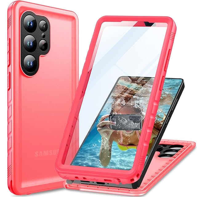 Cozycase Samsung Galaxy S25 Ultra 防水ケース - 海 防塵 完全防水 お風呂 2M 耐衝撃 360 両面 全面 米軍規格 ストラップ付き S25 Ultra 用 ケース - 薄型 水中撮影 QI充電 人気 S 25 Ultra 用 対応 Samsung ギャラクシーS25ウルトラケース「5眼レフ-6.9 粉」 | TREND DESIGN 家電専門店