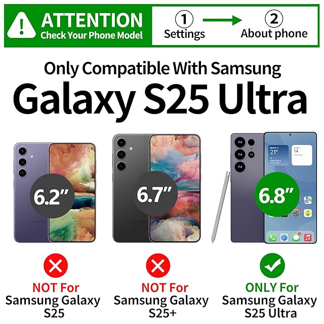【 商品仕様 】 ■ 材質:PC「ポリカーボネート」+TPU「熱可塑性ポリウレタン」 ■ 外形寸法:長さ:192mm×幅:110mm×高さ:17mm×重さ:125g ■ カラー:Black「ブラック」、Green「グリーン」、Pink「ピンク」。 ■ 対応機種:Galaxy S25 Ultra「6.9インチ」 ■ 注意:S25/S25Plusに適用されません。