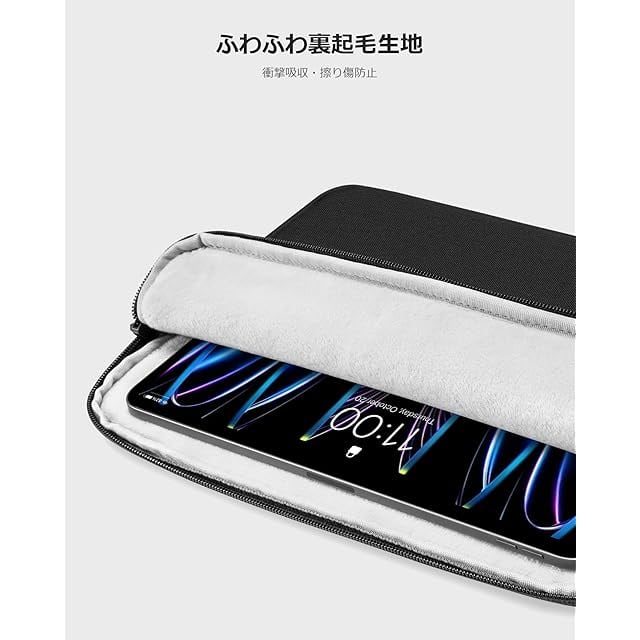 【対応機種】内寸:251×194×16mm。11インチ iPad Pro M4/M2/M1 第4/3/2/1世代 2024-2018 | 11インチ iPad Air M2 2024 | 10.9インチ iPad Air 第5/4世代 M1 2022-2020 | 10.9インチ iPad 10 2022にぴったり対応します。Smart Keyboard Folio・Magic KeyboardまたはApple Pencilホルダー付きのカバーを装着した場合にも対応。10.5インチ iPad Air / iPad Pro | 10.2インチ iPad | 9.7インチiPad / iPad Pro | 10インチ Microsoft Surface Go | Acer Chromebook Tab 10 | 9.7インチと 10.1インチ Samsung Galaxy Tabタブレット| Fire HD 10 / Fire Max 11にも対応。<BR/>【使いやすい収納設計】メインポケットにはタブレットを、フロントポケットに周辺小物を入れていただけます。<BR/>【タブレット保護】衝撃吸収パッドがあり、さらに、裏地は絹のような手触りのふわふわで、タブレットをすり傷、衝撃からしっかり保護します。撥水加工された表地使用、小雨でもご安心いただけます。<BR/>【コンパクトで軽量】この薄型で軽量なLight-B18タブレットケースは軽量かつスリムで、便利に持ち運べ、バックインバッグとしてバックパックやブリーフケースの中に簡単に収納できます。<BR/>【品質へのこだわり】YKKファスナーを採用し、耐久性が優れて、開閉がよりスムーズで。表地はプラスチックからリサイクルしたエコ素材を採用、頑丈で耐用性に優れ、汚染を減らし環境に優しいです。