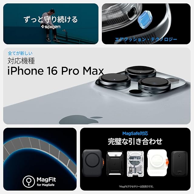 商品名:Spigen 【カメラコントロールカバー付き】iPhone 16 Pro Max ケース MagSafe対応 半透明 クリア ボタン保護 埃防止 ストラップホール 米軍MIL規格 ウルトラ・ハイブリッドT・マグフィット ACS08507 (フロスト・ブラック)