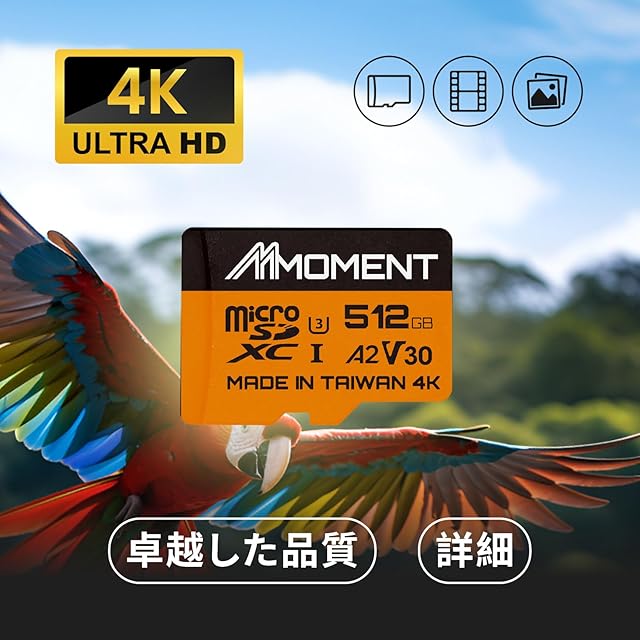 商品名:MMOMENT MicroSDXCカード 512GB A2 / V30 / U3 / Switch対応/SDアダプター付【読込最大100MB/s】