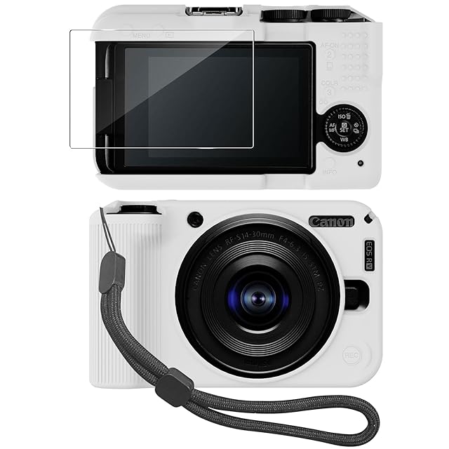 【1+1枚セット】For Canon EOS R50 V ケース 保護カバー+保護フィルム 1枚 [HVUYAL]シリコンケース 傷つきにくい 柔らかなシリカゲルのスポーツクールなデザイン 衝撃 吸収 スリム ソフト ケースカバー 落下防止保護(ホワイト) | TREND DESIGN 家電専門店