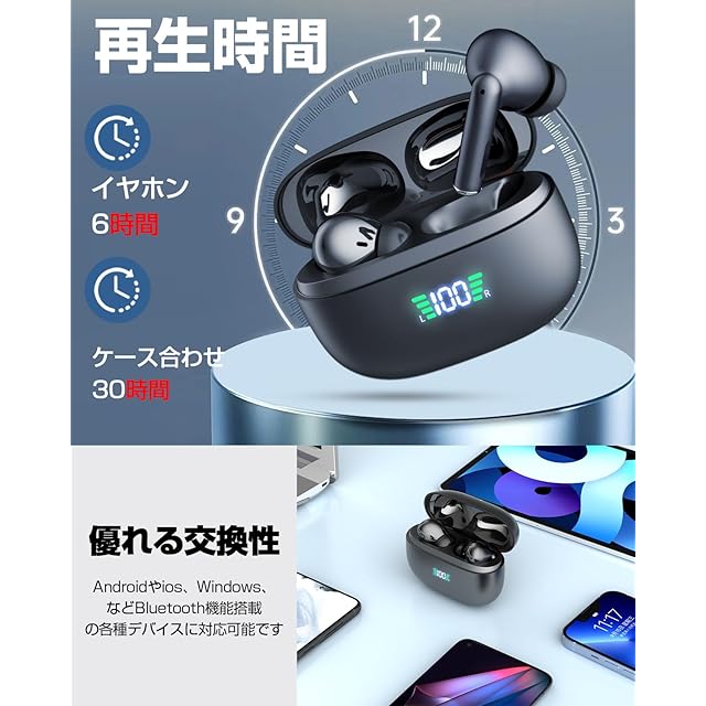 【⚡タイプc快速充電 OVP過充電保護 長時間再生】タイプc 快速充電にも可能です、約2時間の充電でフル充電できます。タイプcのケーブルで簡単に充電できます、電量切れの恐れがありません、OVP過充電保護機能にも内蔵している、ほかの友達、同僚から借りた充電器にも安心に使用できます、電圧が大きくてイヤホンを過充電してイヤホンが故障したリスクが下がりました、イヤホンの使用寿命にも大幅に延長しました。イヤホンだけで、音楽、通話は4-5時間連続使用でき、充電ケースに合わせて30時間以上も可能となっています。イヤホンが必要となっている時、いつでもサーポートできます。