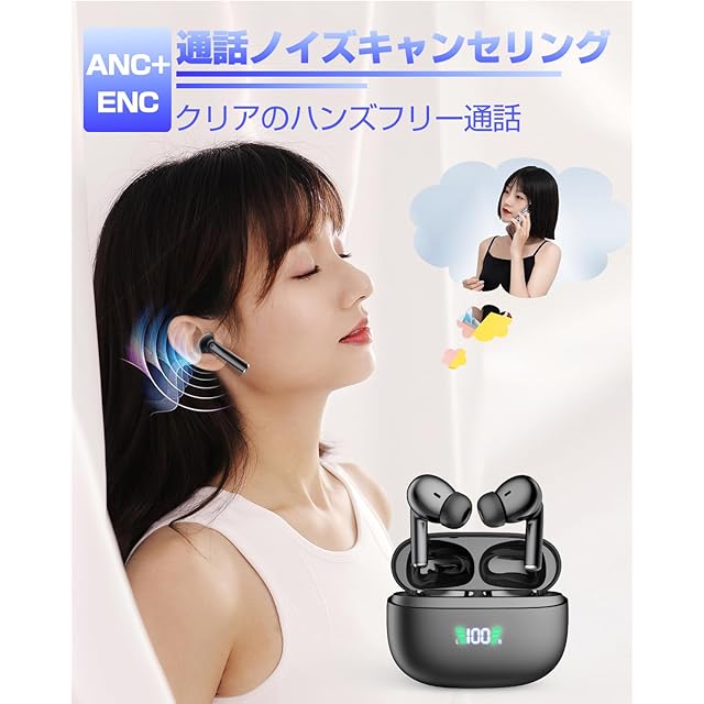 商品名:「ANC イヤホン 業界新星」 ワイヤレスイヤホン bluetooth 5.4 anc ノイズキャンセリング ハンズフリー通話 CVC8.0通話ENCノイズ除去 hi-fi AACコーデック bluetooth イヤホン タイプc 充電保護 長時間 タッチセンサー 左右分離型 カナル型 フィット感 通勤/通学/散歩 WEB会議/テレワーク/ZOOM/A.Iリアルタイム翻訳