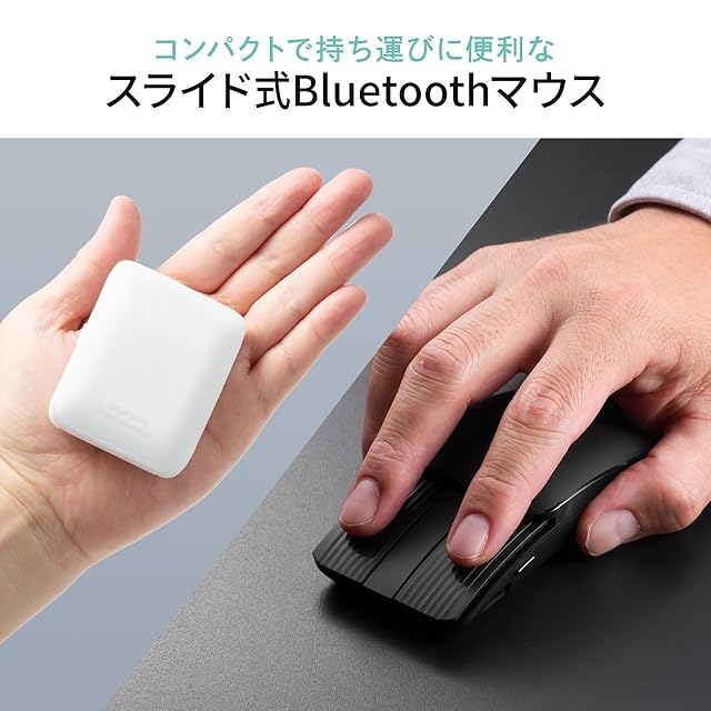 スライドカバーを閉じることで小さくなる、持ち運びに便利な 超小型 マウス です。カバーを閉じると奥行70.5mmと、クレジットカード(86.5mm)より小さくなります。厚さが約27mmで超 薄型 です。カバーがボタンを保護するので、他の ミニマウス と比べて壊れにくいです。