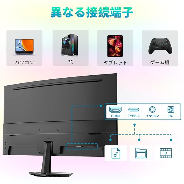 この27インチVAカーブドモニターは、高コントラスト比と広色域を実現した高性能ディスプレイです。最大解像度1920×1080(FHD)で、鮮明で鮮やかな映像を提供。1500Rの曲率により、没入感のある視聴体験を実現します。HDR対応で映画やゲームの臨場感を高め、100Hzのリフレッシュレートで滑らかな映像を楽しめます。 高画質と没入感 ●1920×1080(FHD)解像度:フルHD解像度で、細部まで鮮明に表示。高品質な映像を楽しめます。 ●1500Rのカーブドデザイン:1500Rの曲率により、自然な視野と没入感を提供。ゲームや映画鑑賞に最適です。 ●110% sRGB色域と16.7万色の色深度:広い色域と豊富な色彩表現で、鮮やかな映像を提供します。 ●HDR対応:HDR対応により、映像のコントラストと色彩表現を大幅に向上。映画やゲームの臨場感を高めます。 高性能と快適性 ●100Hzリフレッシュレート:動画やゲームで滑らかな映像を提供し、残像感を大幅に低減します。 ●14msの応答速度(OD 5ms/MPRT 1ms):高速な応答速度で、遅延を最小限に抑え、ゲームプレイに最適です。 ●178°広視野:VAパネル採用により、広い視野角を実現。角度を変えて見ても色褪せや歪みが少なく、複数人で画面を共有する場面にも最適です。 ●ブルーライト軽減機能とフリッカーフリー技術:長時間の使用でも目を疲れにくくします。 ●傾斜角度調整(-5°から15°):快適な視聴環境を実現します。 接続性と機能 ●入力端子:HDMI 1.4、USB Type-Cを搭載。多様なデバイスに対応し、USB Type-C接続で映像とデータを一括管理できます。 ●出力端子:音声出力端子と内蔵スピーカーを装備。音声の外部出力も可能です。 ●Adaptive Sync対応:画面のティアリングやスタッターを防ぎ、ゲームプレイをより快適にします。 ●VESAマウント対応(100mm×100mm):壁掛けやアーム取り付けにも対応し、設置場所を選ばず使用できます。 設置と収納 ●スタンド付属:安定した設置が可能で、デスクトップ環境をすっきりと保ちます。
