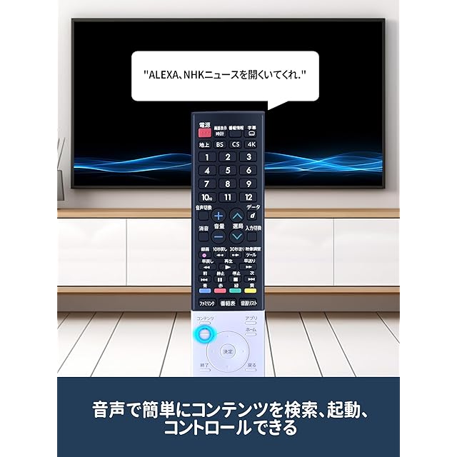 【音声認識機能付き】リモコンは音声検索が可能で、音声認識ボタンを押しながらリモコンに話しかけることで、好きなタイトルの検索や再生を操作することができます。