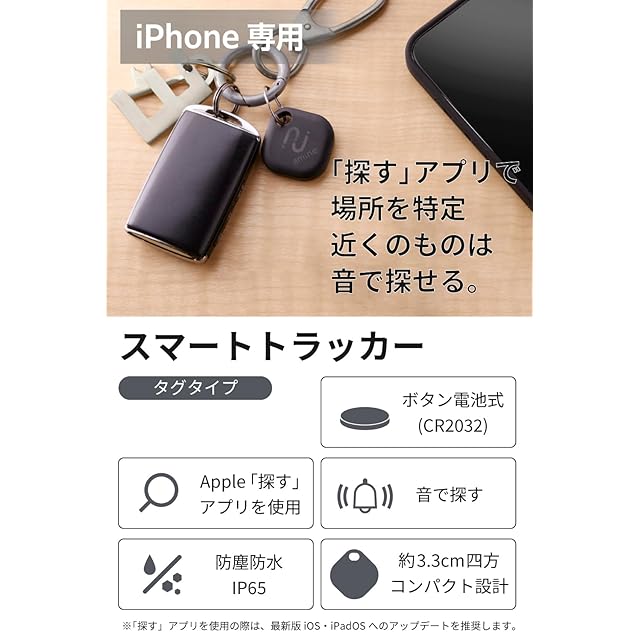 商品名:エレコム 紛失防止タグ iPhoneの「探す」から忘れ物を見つける iOSのみ対応 繰り返し使える電池交換式 スマートトラッカー 位置情報 タグ 忘れ物防止タグ 1個入り LGT-ELBETG1BKA