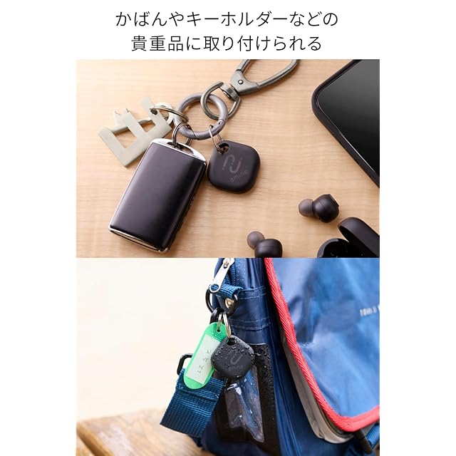 約3.3cm四方のタグ型だから、家や車の鍵などにキーホルダー感覚で付けられます。スーツケースやランドセルの位置確認にも便利。旅行をはじめとしたさまざまなシーンで活用できます。