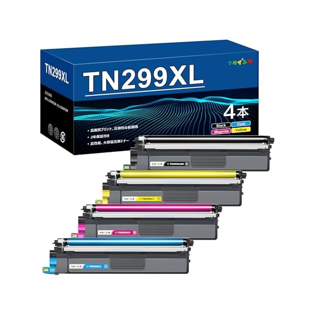 【セット内容】ブラザー(Brother)対応 TN299XL 互換トナーカートリッジ 4本セット(TN299XLBK TN299XLC TN299XLM TN299XLY 各1本)。